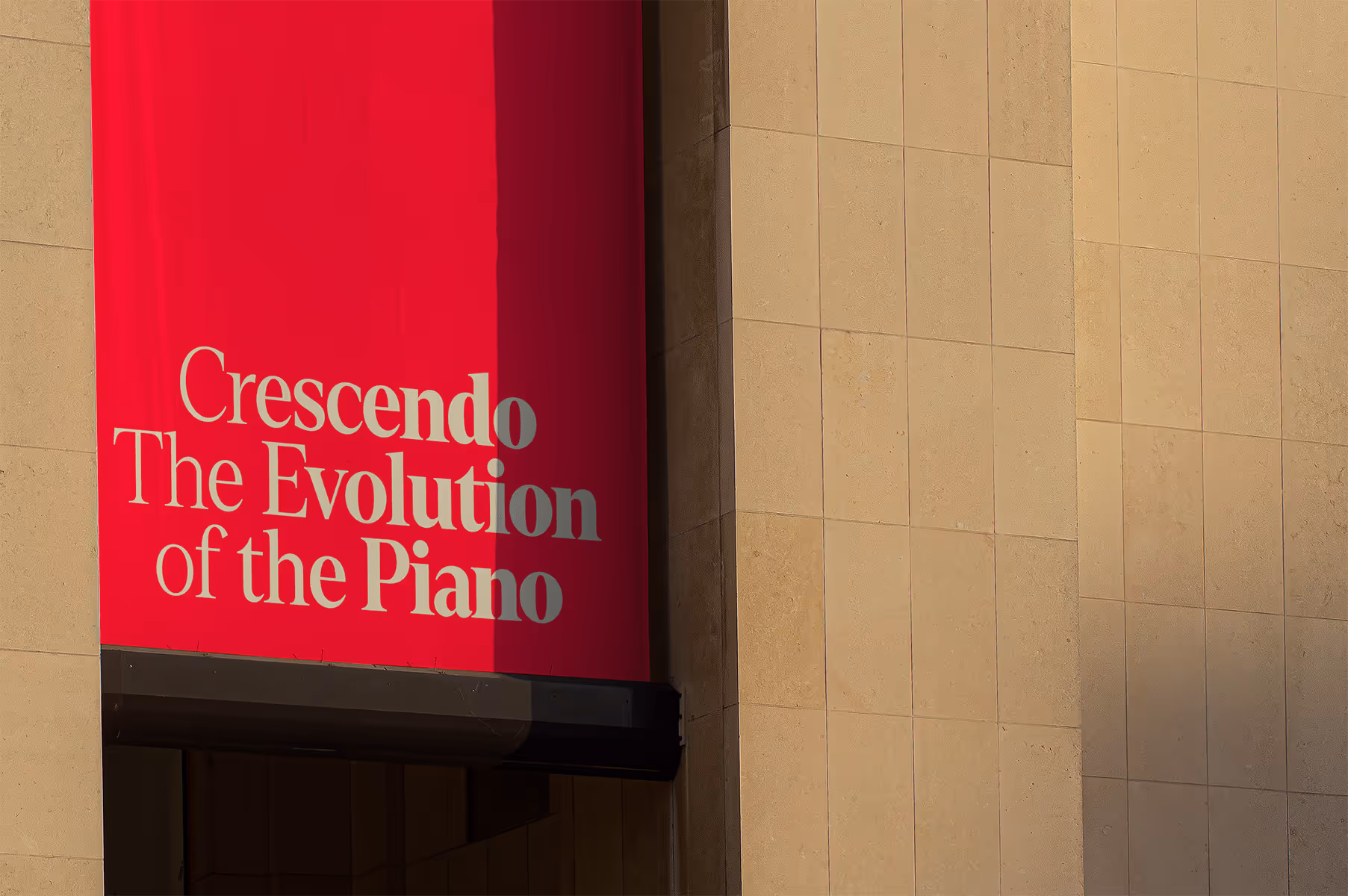 How— The identity centers on the piano’s defining innovation: its ability to shift in volume and intensity — to crescendo. Typography becomes the primary storytelling device, with headlines that visually transition from restrained to bold, embodying shifts in sound. The typeface draws from expressive early 20th-century titling, reinforcing the exhibition’s dialogue between heritage and modern relevance. The color palette references the instrument’s material origins, deep ebony, ivory keys, and red felt. Animated piano “ribbons” violate layouts, introducing motion as a core brand element. An interactive promotional tool extends the identity beyond the exhibition space, inviting audiences to engage with the instrument.